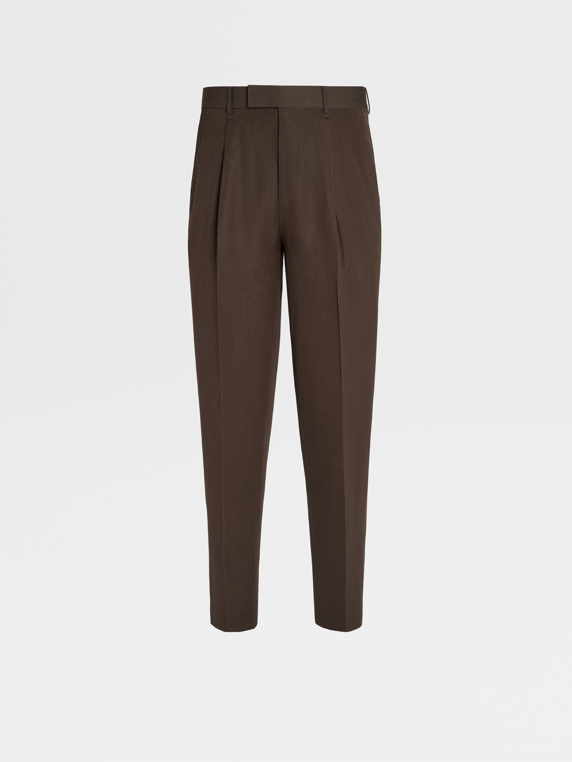 棕色 TROFEO SUMMER 羊毛亞麻單褶長褲